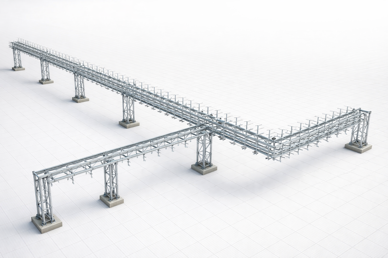 Кабельные эстакады – ключевой элемент инфраструктуры крупных промышленных объектов. Задача эстакады инженерных сетей – безопасно и упорядоченно прокладывать большое количество кабелей на значительные расстояния.