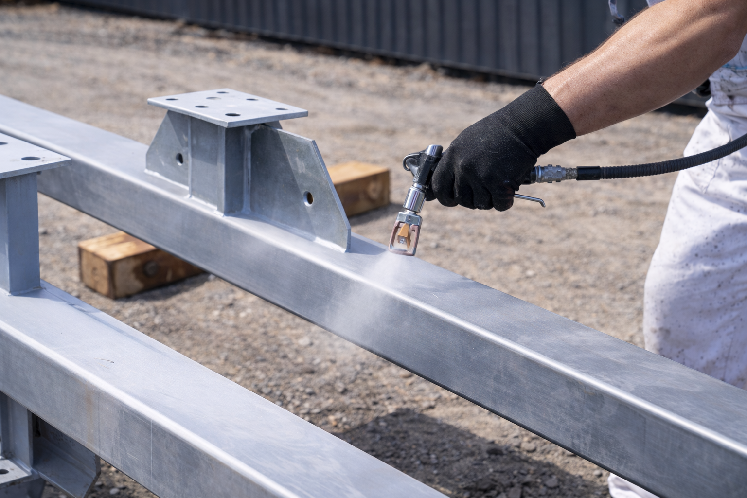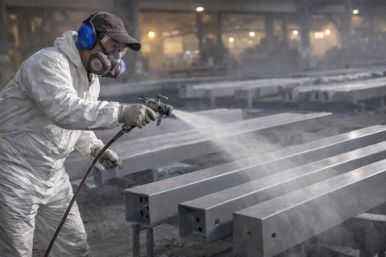 Процесс грунтовки металлоконструкций