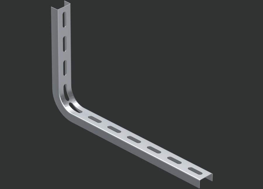 - Вдоль стены перфорированный лоток устанавливают на кабельных полках, консолях Strut, У-образных швеллерах, настенных кронштейнах.