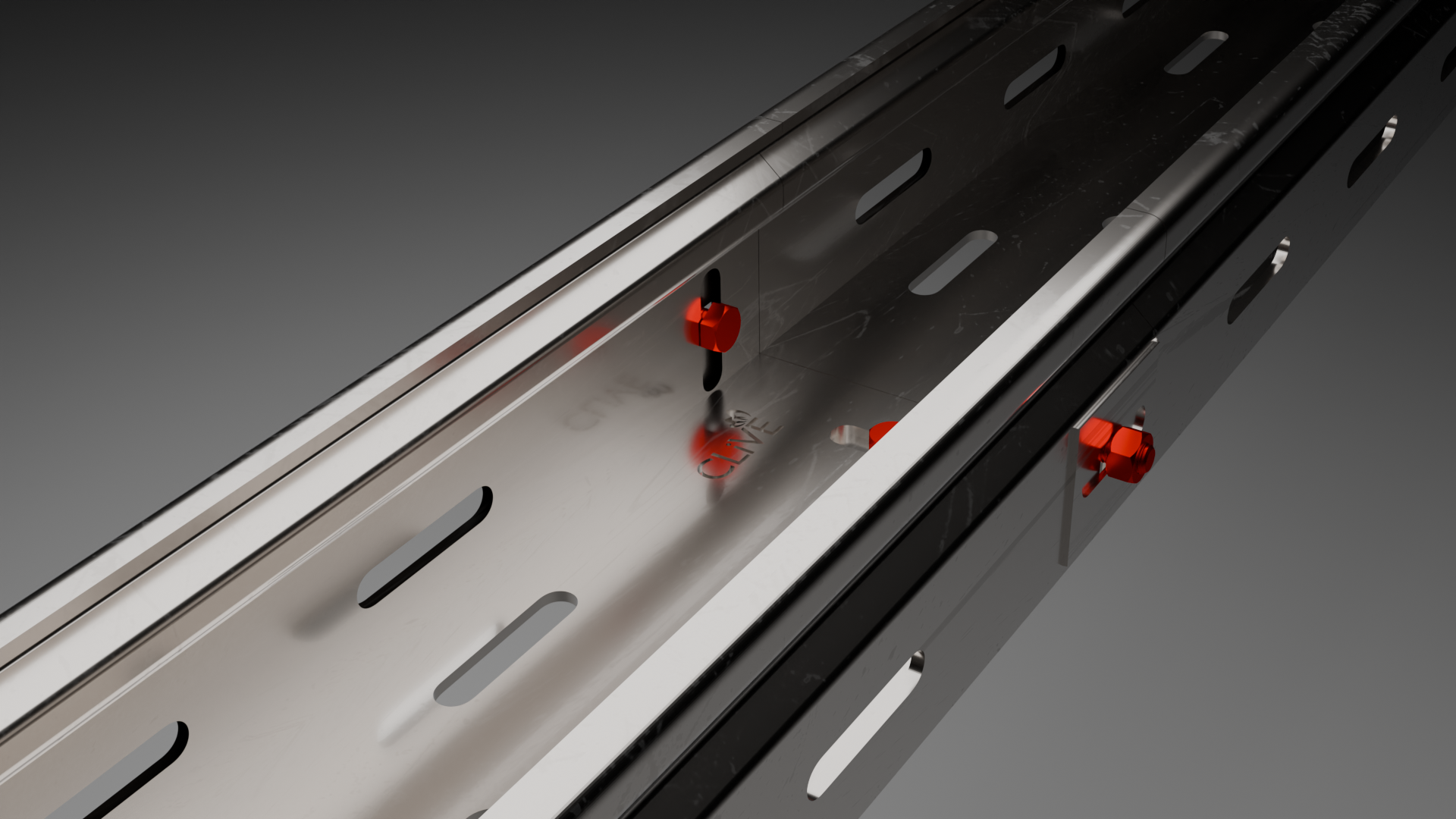 При монтаже кабельных лотков один элемент лотка стыкуют с другим внахлёст, чтобы получить ровный и прочный стык. Фиксацию выполняют тремя винтовыми комплектами: винт М6 устанавливают изнутри лотка, стопорную гайку – снаружи.