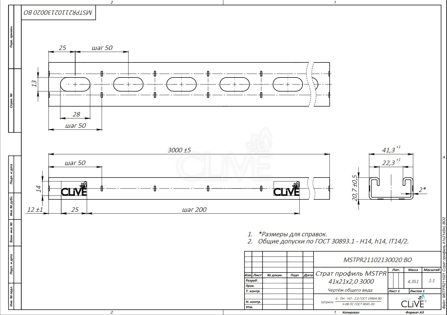 Страт профиль MSTPR 41х21х1,5 1200 без покрытия CLIVE